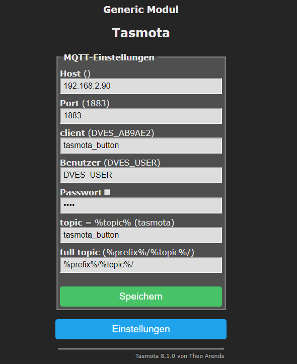 Abschließen klicken wir auf die Speichern-Schaltfläche und starten zudem noch den Tasmota neu.