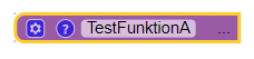 Wenn wir nun die Funktion aufrufen möchten, klicken wir einfach wieder auf den Bereich „Funktionen“ und können dort unsere Funktion „TestFunktionA“ in unser Blockly-Script ziehen.