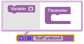 Der Funktions-Block besitzt eine eigene Konfiguration, mit der Parameter hinzugefügt oder entfernt werden können. Zudem kann über das Fragezeichen eine Dokumentation hinterlegt werden.