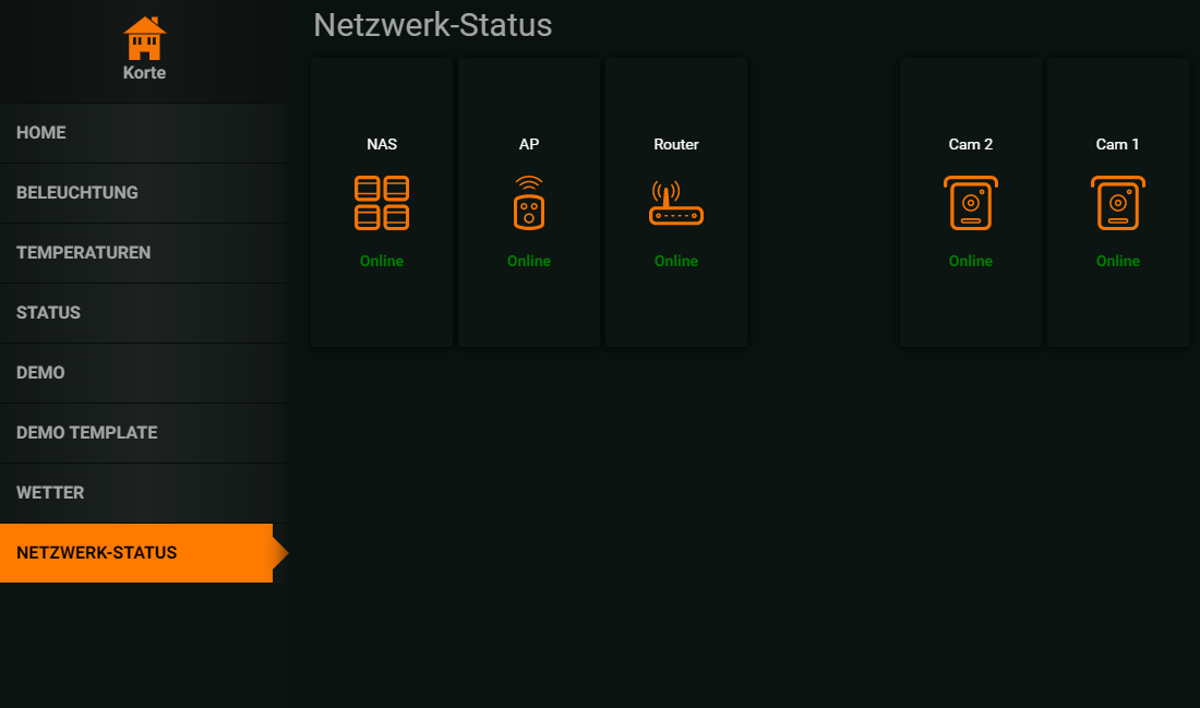Ich habe zur Visualisierung ein weiteres Dashboard „Netzwerk-Status“ erstellt. Auf diesem Dashboard werden nun alle Geräte angezeigt.