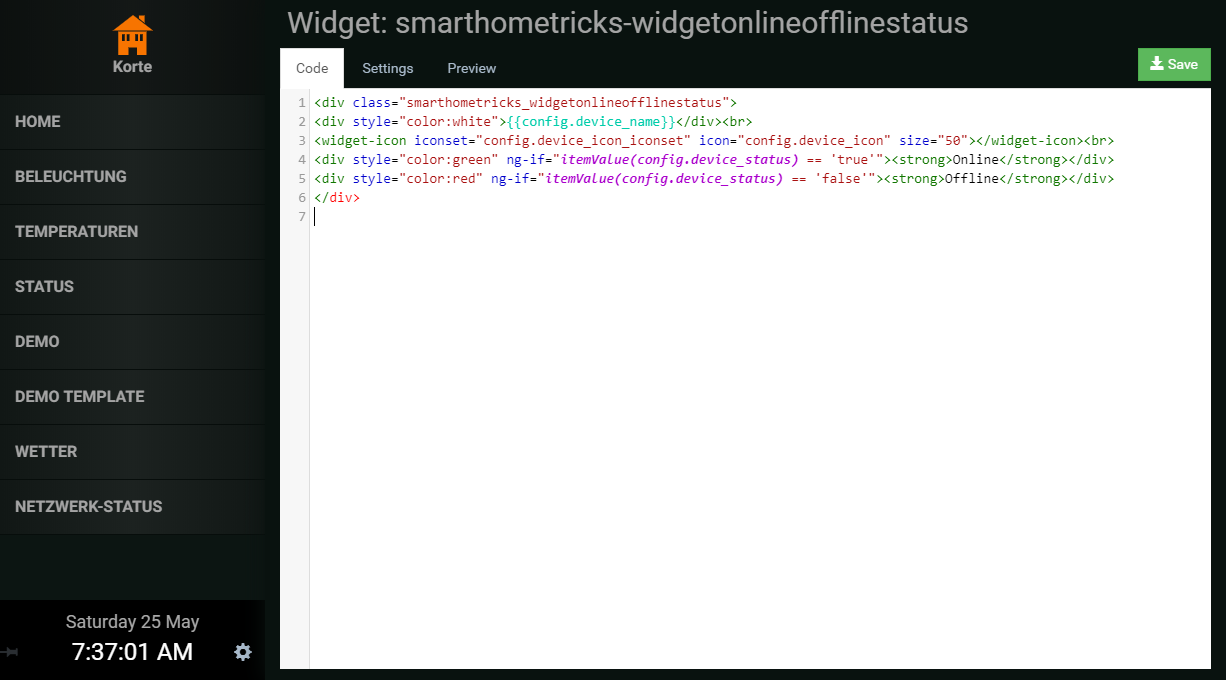 Im 24. Teil der Artikelreihe erstellen wir uns ein eigenes Widget zur Darstellung des Online/Offline Status unserer Netzwerk-Geräte wie z.B. des NAS oder IP-Kameras. Da ich für diesen Zweck kein passendes Widget gefunden habe, erstellen ich nun ein eigenes Widget. Das Widget soll dazu folgende Eigenschaften erhalten: