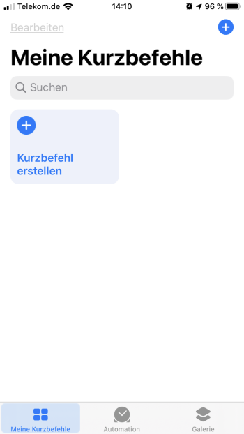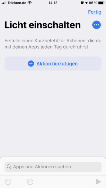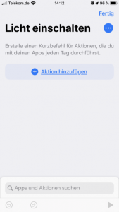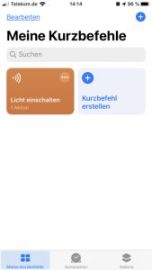 Als erstes Beispiel möchte ich mir einen Kurzbefehl anlegen, mit dem ich bestimmte Leuchtmittel einschalten kann.