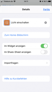 Nach dem die Konfiguration abgeschlossen ist, kannst Du jetzt die Aktion und den Kurzbefehl speichern.