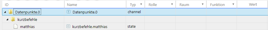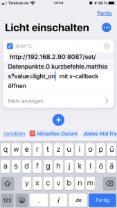Den Datenpunkt „Datenpunkte.0.kurzbefehle.matthias“ verwenden wir jetzt in der App „Kurzbefehle“.