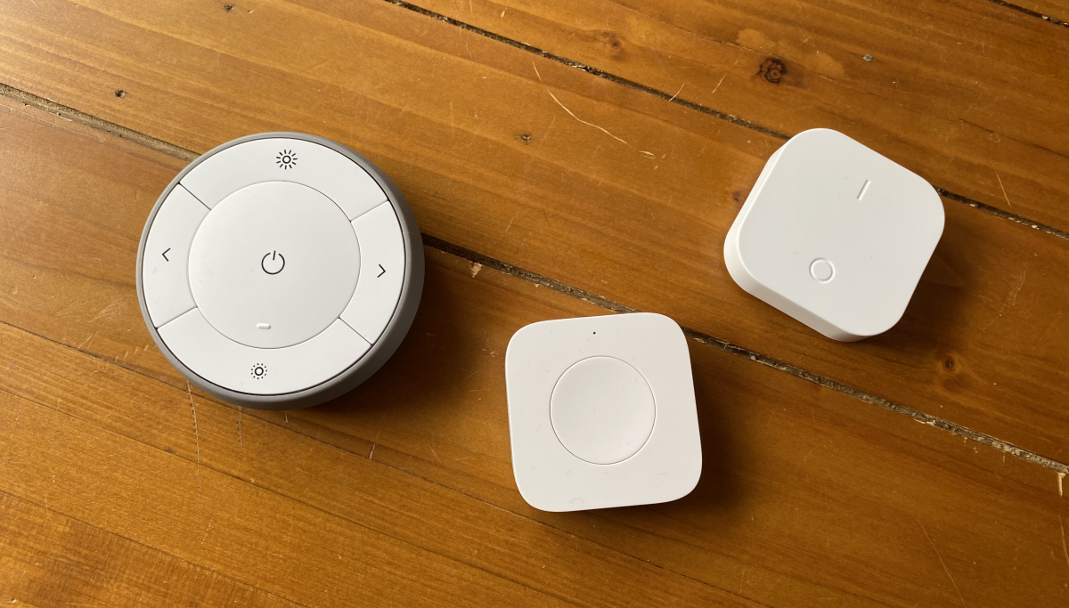 ![]() | TRÅDFRI Kabelloser Dimmer | Zigbee | Benötigte Hardware: Hue Gateway, CC2531 Zigbee Stick oder ConBee II Funktionen: 2x Taster für unterschiedliche Funktionen. Preis: ca. 6 euro bei Ikea | Ikea |